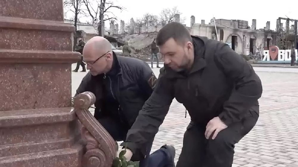 Врио Главы ДНР Денис Пушилин и Сергей Кириенко возложили цветы к памятнику герою России Владимиру Жоге