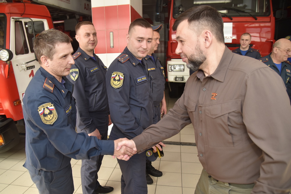 Во вторник, 30 апреля, в День пожарной охраны Глава Донецкой Народной Республики Денис Пушилин посетил 1-ю пожарно-спасательную часть города Донецка и поздравил сотрудников МЧС с профессиональным праздником.