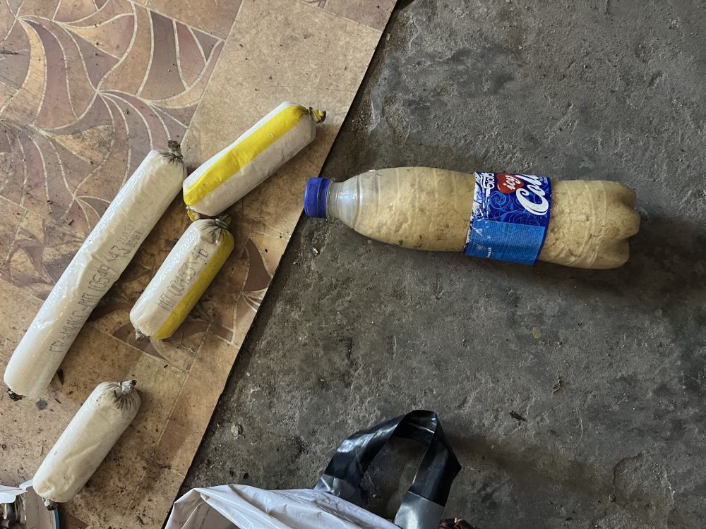 При проверке оперативной информации полицейские выявили в гараже местного жителя предметы, визуально схожие с боеприпасами. В ходе осмотра сотрудники полиции изъяли 4 упаковки и пластиковую бутылку, содержащие, предположительно, взрывчатое вещество. Помимо этого, были изъяты предметы, похожие на патроны калибра 5,45 мм и мелкокалиберные патроны, 3 предмета, похожие на запалы, предмет, похожий на корпус гранаты Ф-1, а также похожий на запал предмет, оборудованный чекой и кольцом.