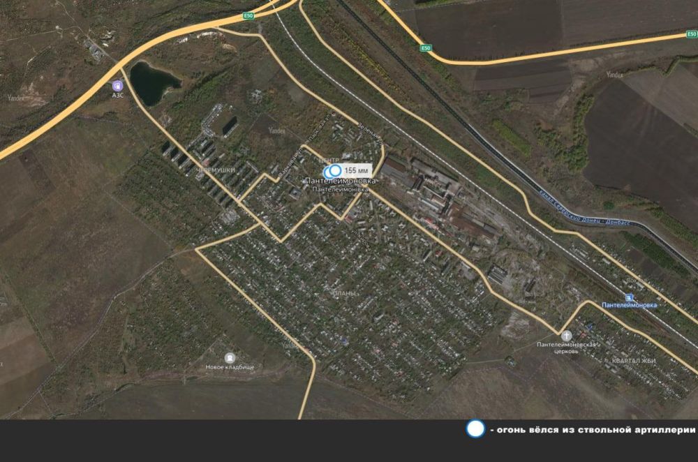 пос. Пантелеймоновка (в 07:40 выпущено 2 снаряда калибром 155 мм):
