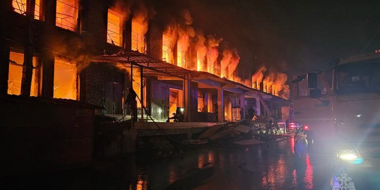 Вечером в Будённовском районе Донецка произошло масштабное возгорание в здании складского помещения. Пожар начался на втором этаже и быстро распространился по всей площади, охватив 3500 квадратных метров. Огонь также перекинулся на соседнюю постройку, что усложнило ситуацию, сообщили в пресс-службе МЧС ДНР.