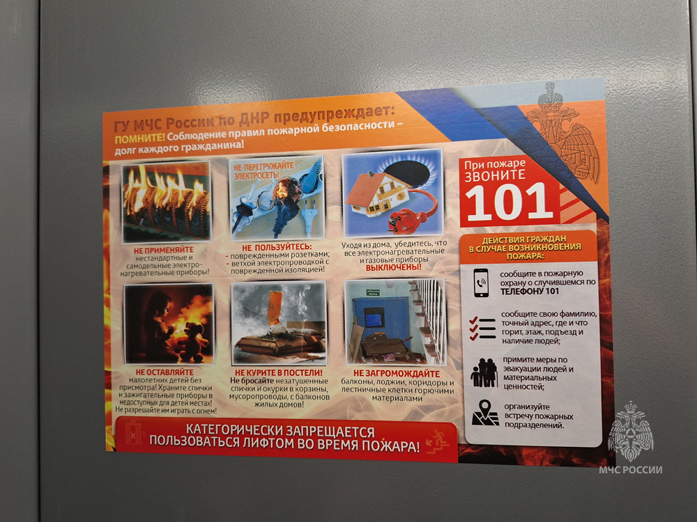 Сотрудники Главного управления МЧС России по ДНР выступили с полезной инициативой – разместить противопожарные памятки во всех лифтах Республики.