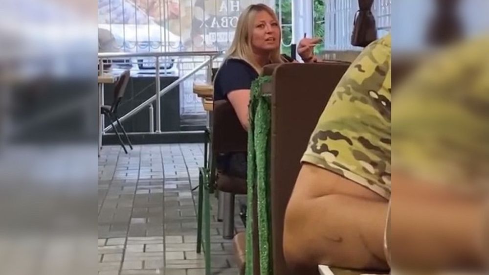 В социальных сетях появилось видео, на котором запечатлено, как в одном из заведений Донецка выпившая женщина оскорбительно выражалась в адрес обедающих за соседним столиком российских военнослужащих