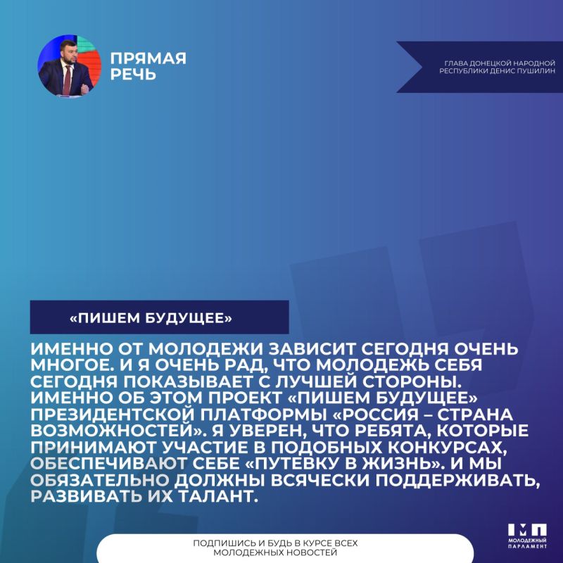 А вы нашли себя в списке финалистов проекта «Пишем будущее»?Тогда скорее переходите на сайт проекта, где уже определены 500 финалистов! Ими стали школьники и студенты в возрасте от 14 до 18 лет из ДНР