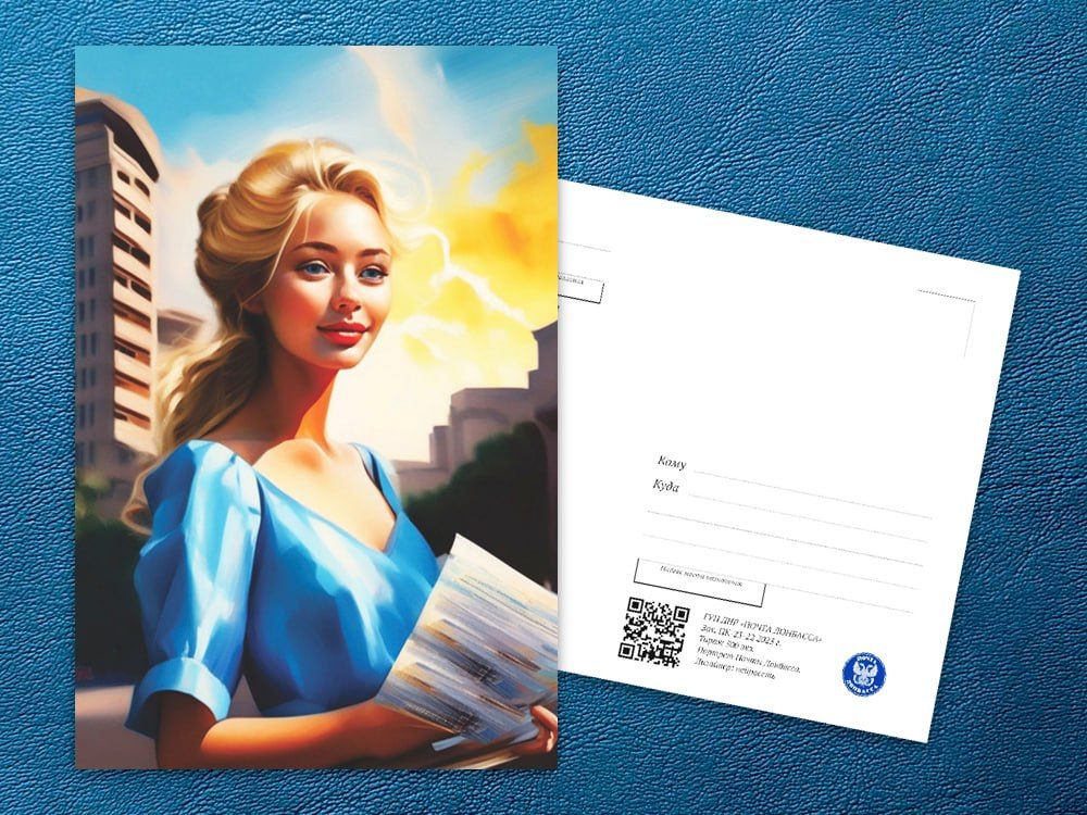 Давно планировали и наконец-то нашли время для эксперимента;) Вот так выглядит Почта Донбасса по мнению нейросети. Что сказать? Портрет в достаточной степени комплиментарный и нас вполне устраивает) Блондинка полна обаяния и светлых надеждОтметим также и правильный оттенок платья (наш фирменный — синий).