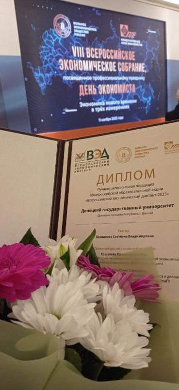 ДонГУ признан одной из лучших площадок Всероссийского экономического диктанта Диплом Лучшей региональной площадки общероссийской образовательной акции «Всероссийский экономический диктант 2023» официа