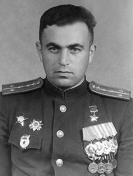 Заместитель командира эскадрильи 103-го штурмового авиационного полка (230-я штурмовая авиационная дивизия, 4-я воздушная армия, 2-й Белорусский фронт) старший лейтенант В.Б. Корсунский к маю 1945 г. совершил 152 боевых вылета на штурмовку боевой техники противника.