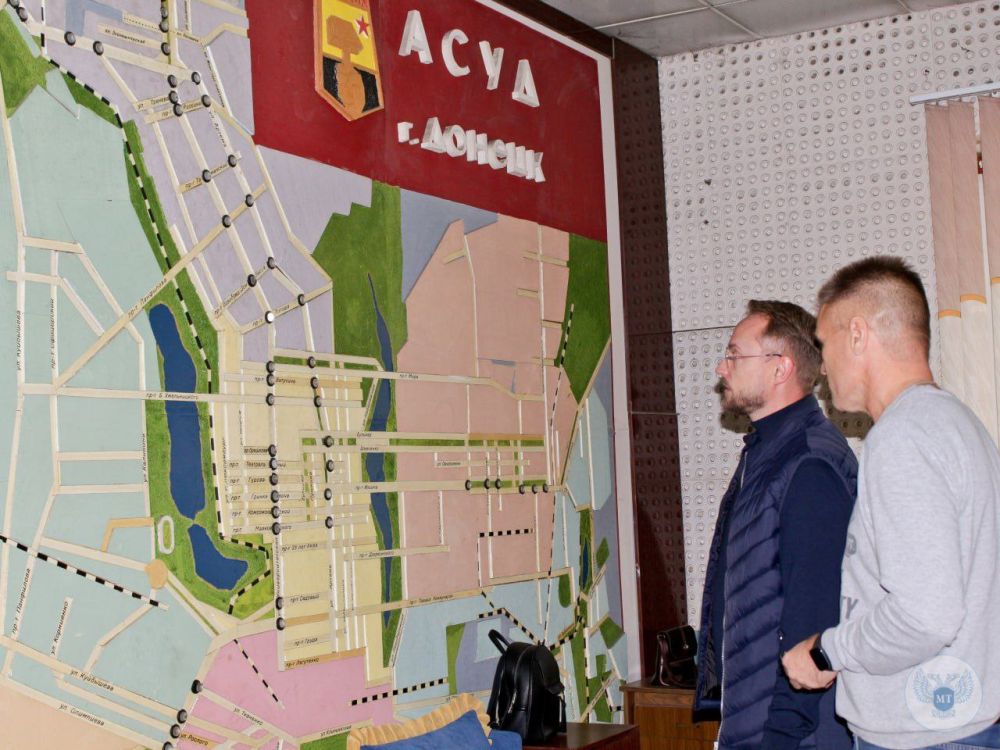 О перспективах работы АСУД г. Донецка (автоматизированной системы управления и диспетчеризации) говорили замминистра транспорта ДНР Артем Бафанов и Николай Луговской в ходе встречи на базе Центра управления.