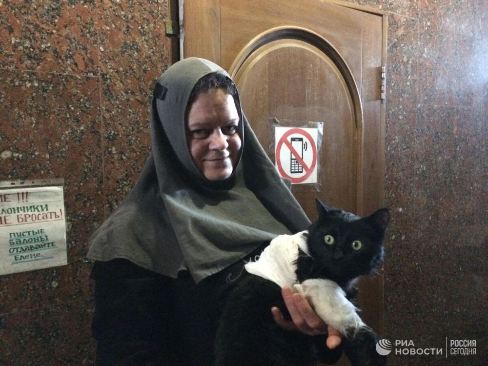 В монастыре приютили несколько десятков собак и кошек. Некоторые ранены, некоторые больны. Их пытаются вылечить и найти новых хозяев.