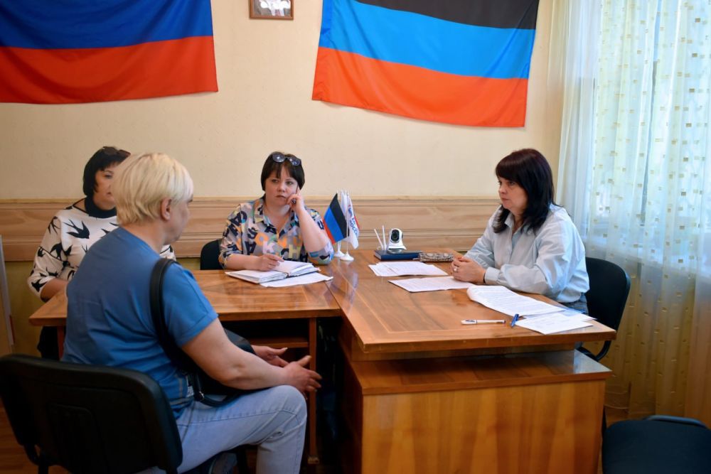 Во вторник, 6 июня, директор департамента государственной социальной помощи населению Министерства труда и социальной политики ДНР Анжела Зайцева провела выездной прием граждан в общественной приемной врио Главы ДНР, председателя ОД «Донецкая Республика» Дениса Пушилина в Киевском районе г. Донецка.
