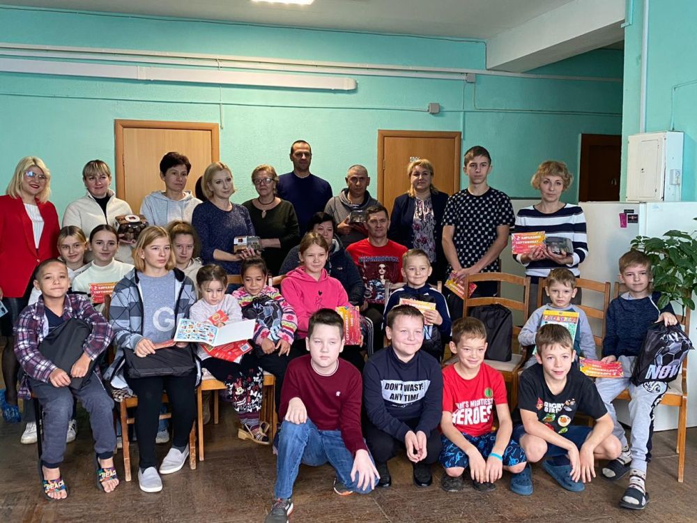 В ходе встречи гости поздравили детей с началом нового учебного года, подарили сладкие подарки для каждой семьи, канцелярские товары и 19 сертификатов на приобретение канцелярских товаров.