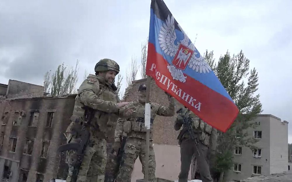 В видеообращении, которое иллюстрирует эту публикацию, показано, как руководитель республики с автоматом и в военной экипировке водружает черно-сине-красный флаг на крыше одного из немногих уцелевших в Артемовске административных зданий. Пушилин назвал это событие символичным моментом, поблагодарил бойцов группы "Вагнер" за "выполненную сложнейшую боевую задачу" и призвал "двигаться дальше, к всеобъемлющей победе России".