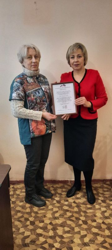 Начальник Республиканского центра здоровья Татьяна Ёжикова приняла благодарственное письмо за многолетнее партнерство от ответственного редактора Радио "Республика Донбасс" Виктории Клепиковой.