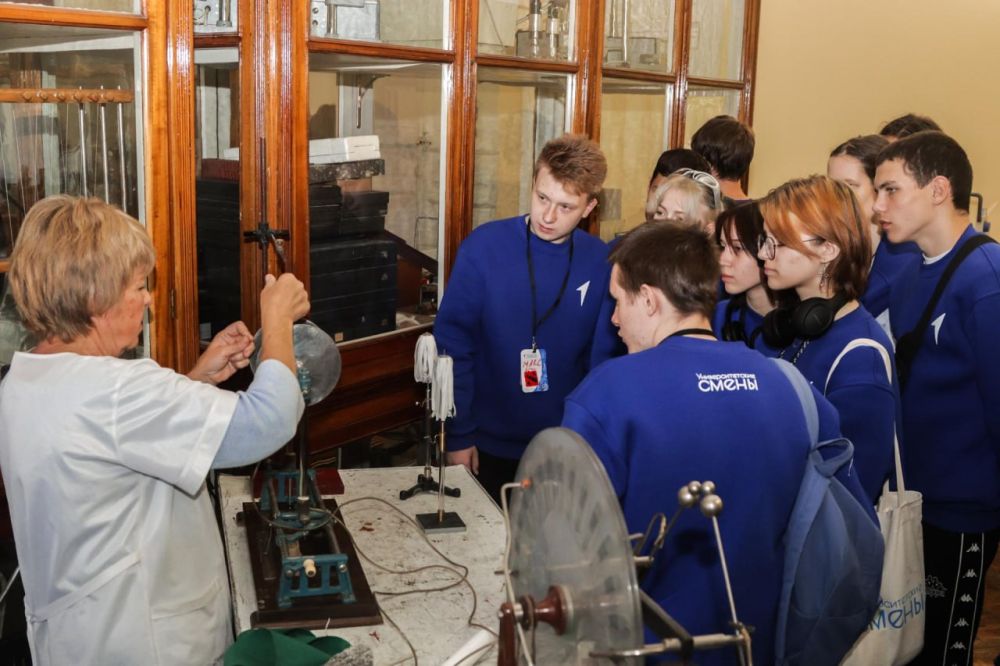 В рамках «Университетской смены» 48 ребят из Донецка и Мариуполя посетили отдел редких книг и рукописей Зональной научной библиотеки имени В. А. Артисевич и 2 музея СГУ им. Н. Г. Чернышевского — зоологический и физических приборов.
