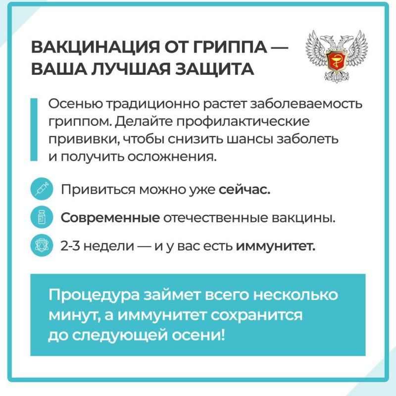 В Донецкой Народной Республике началась кампания по вакцинации против гриппа В прививочные пункты региона уже поставлена современная и безопасная отечественная вакцина