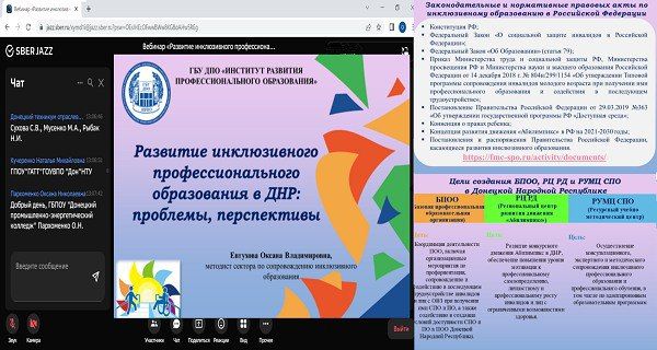 В Институте развития профессионального образования прошел вебинар по вопросам развития инклюзивного образования в ДНР