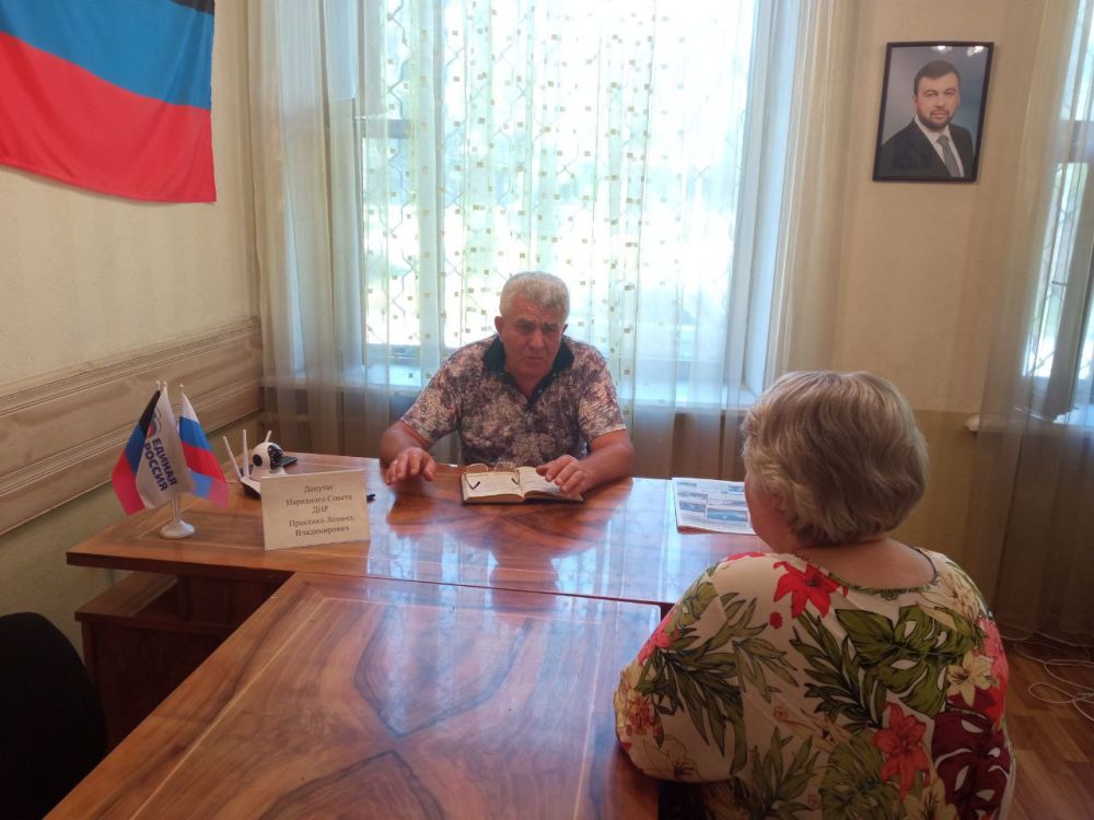 Сегодня, 15 августа, в общественной приемной партии "Единая Россия" Киевского района города Донецка Депутат Народного Совета ДНР Леонид Присенко провел личный прием граждан.