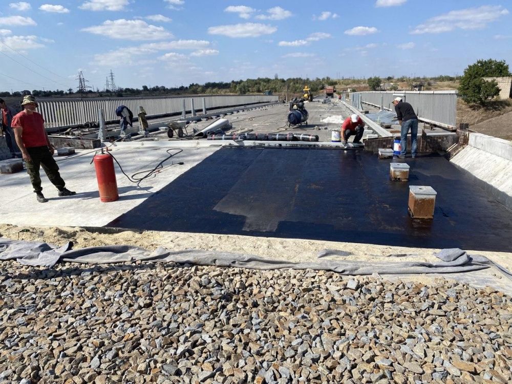 В настоящий момент строители приступили к устройству переходных плит — работы ведутся со стороны дамбы Павлопольского водохранилища. Также выполнена укладка нижнего слоя асфальтового покрытия на проезжей части моста.