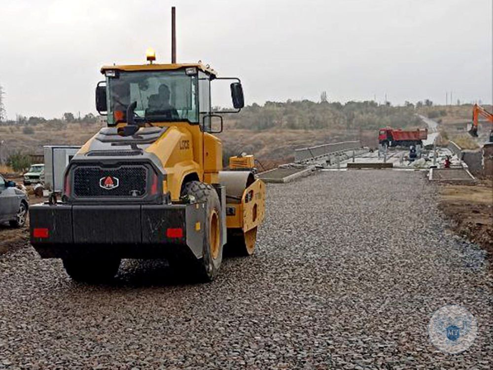 В селе Павлополь приступили к устройству щебеночного основания и укладке асфальта на подходах к строящемуся мосту через