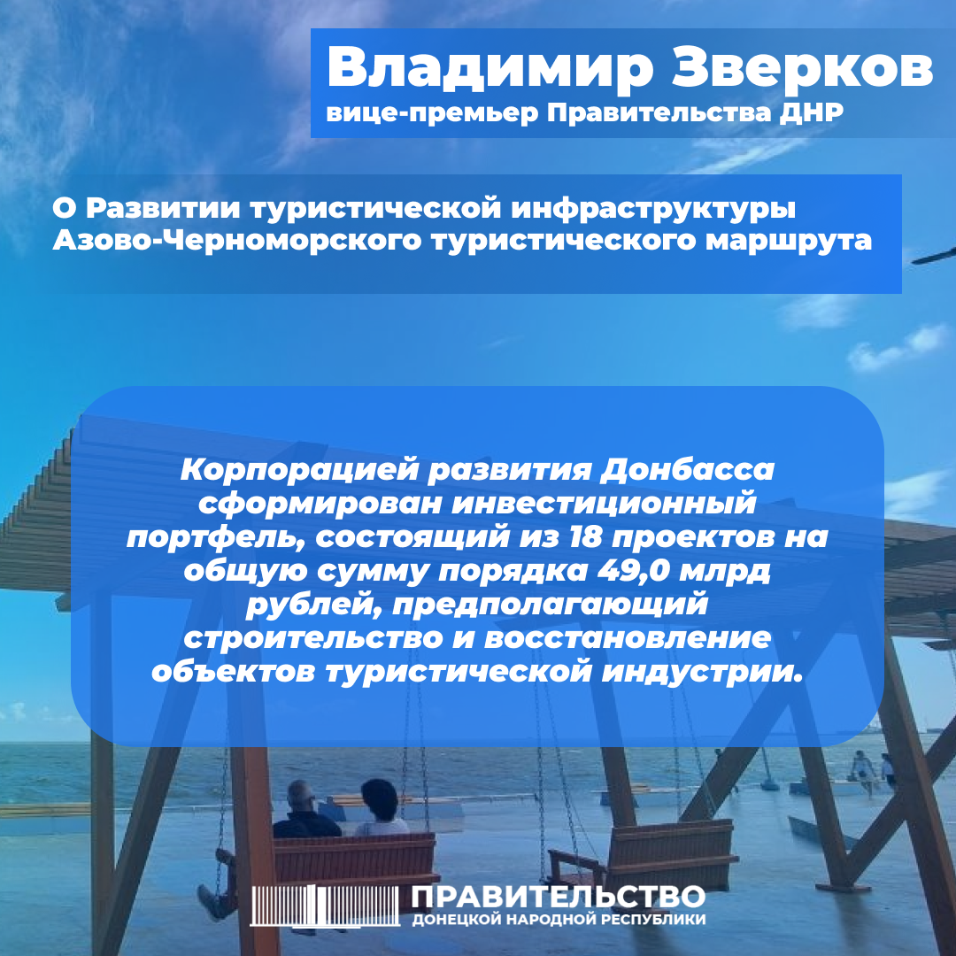 Заместитель Председателя Правительства Владимир Зверков выступил на экспертной панели «Развитие Азово-черноморского туристического кластера». Вице-премьер рассказал о приоритетных направлениях инфраструктурного развития Приазовья.