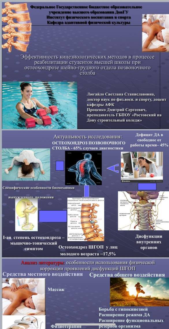 В рамках конференции Светлана Станиславовна совместно с преподавателем ГБПОУ «Ростовский на Дону строительный колледж» Дмитрием Проценко представили доклад на тему «Эффективность кинезиологических методов в процессе реабилитации студенток высшей школы при остеохондрозе шейно-грудного отдела позвоночного столба».